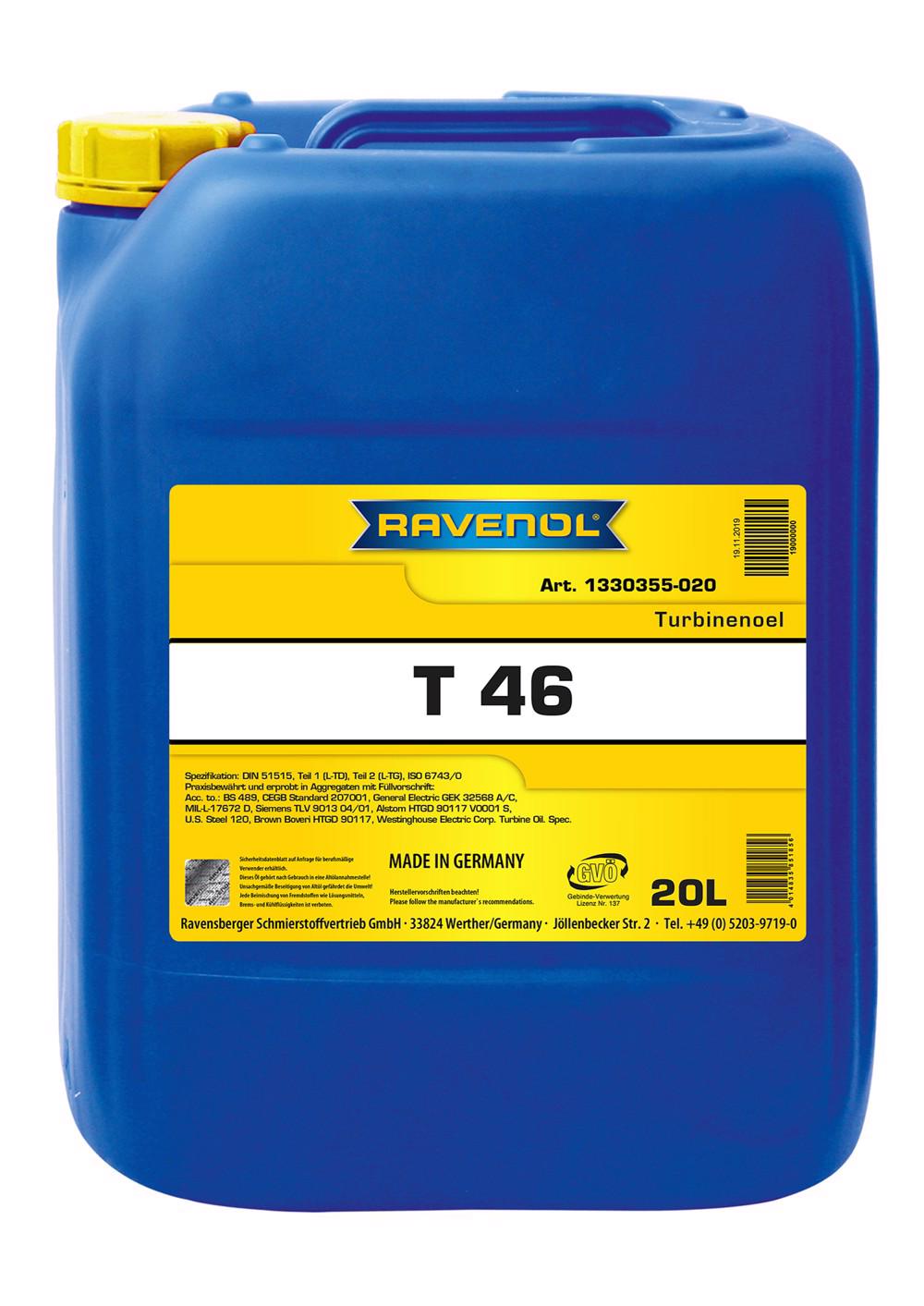 RAVENOL Turbinenöl T 46 este utilizat in turbinele fixe cu gaz sau abur, dar si in masinile electrice sau masinile actionate de turbine pe abur precum generatoare, compresoare, pompe si transmisii.