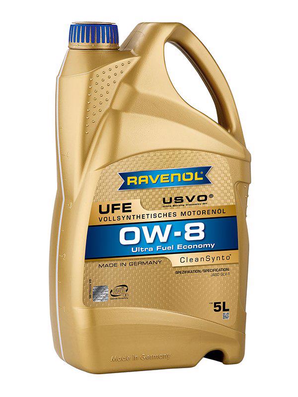 RAVENOL Ultra Fuel Economy UFE SAE 0W-8 este un ulei, de motor, pe bază de PAO (polialfaolefină), integral sintetic, cu frecare redusă, fabricat cu tehnologia USVO® și CleanSynto®, pentru motoarele pe benzină, pentru autoturisme cu/fără turbo și injecție directă.