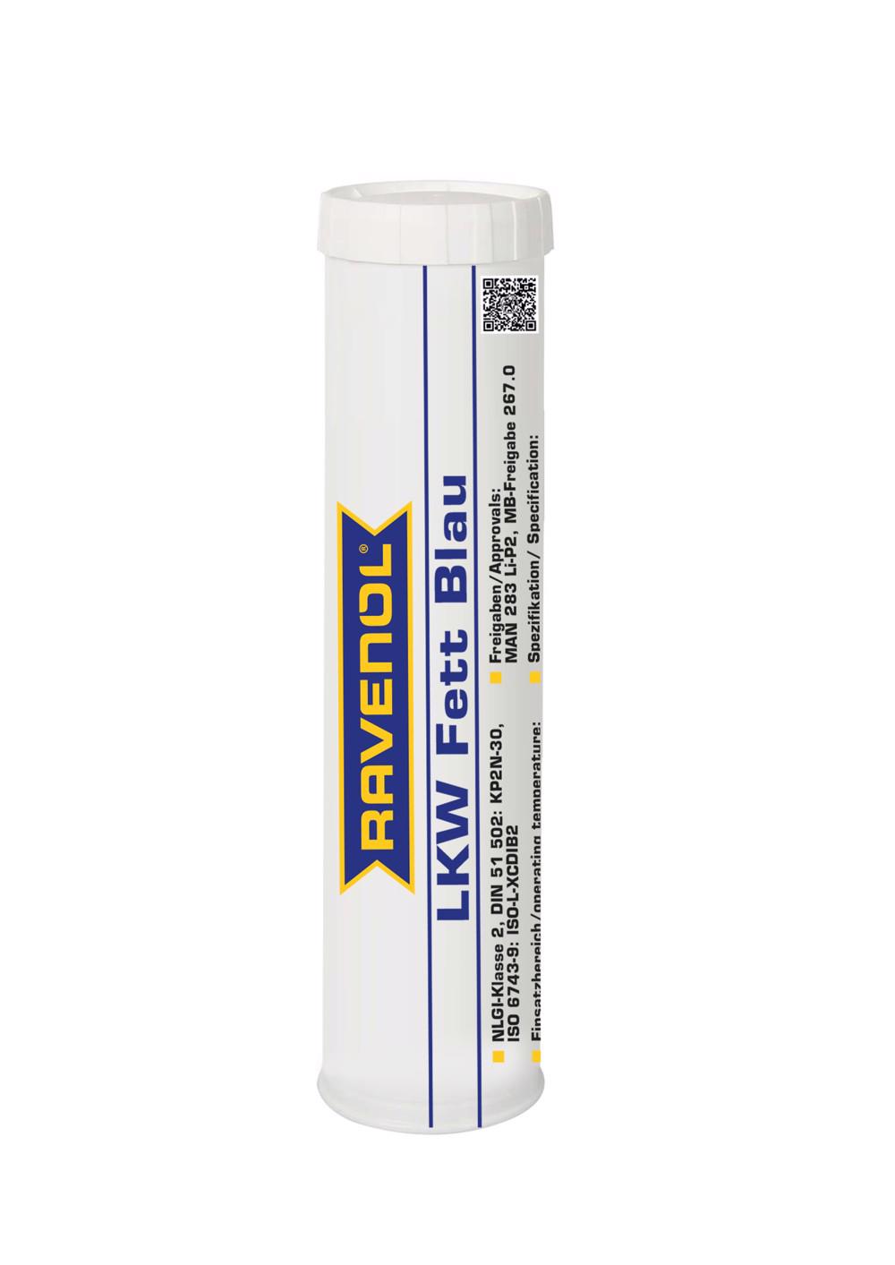 RAVENOL LKW FETT BLAU este un unsoare multifunctionala cu sapun de litriu, uleiuri minerale si aditivi antioxidare si anticoroziune. Datorita aditivarii speciale, RAVENOL LKW FETT BLAU are o capacitate de absorbtie a presiunii excelenta, protectie anticoroziune si stabilitate mecanica superioara. RAVENOL LKW FETT BLAU este utilizata pentru lubrifierea rulmentilor cu frictiune si antifrictiune incarcati puternic, regasite la camioane si utilaje de contructii, chiar si sub influenta umiditatii si vibratiei. Gama de temperaturi de operare incepe de la 30°C pana la + 150 °C (maxim 220 °C). Clasa NLGI 2. Intervale extinse de lubrifiere.