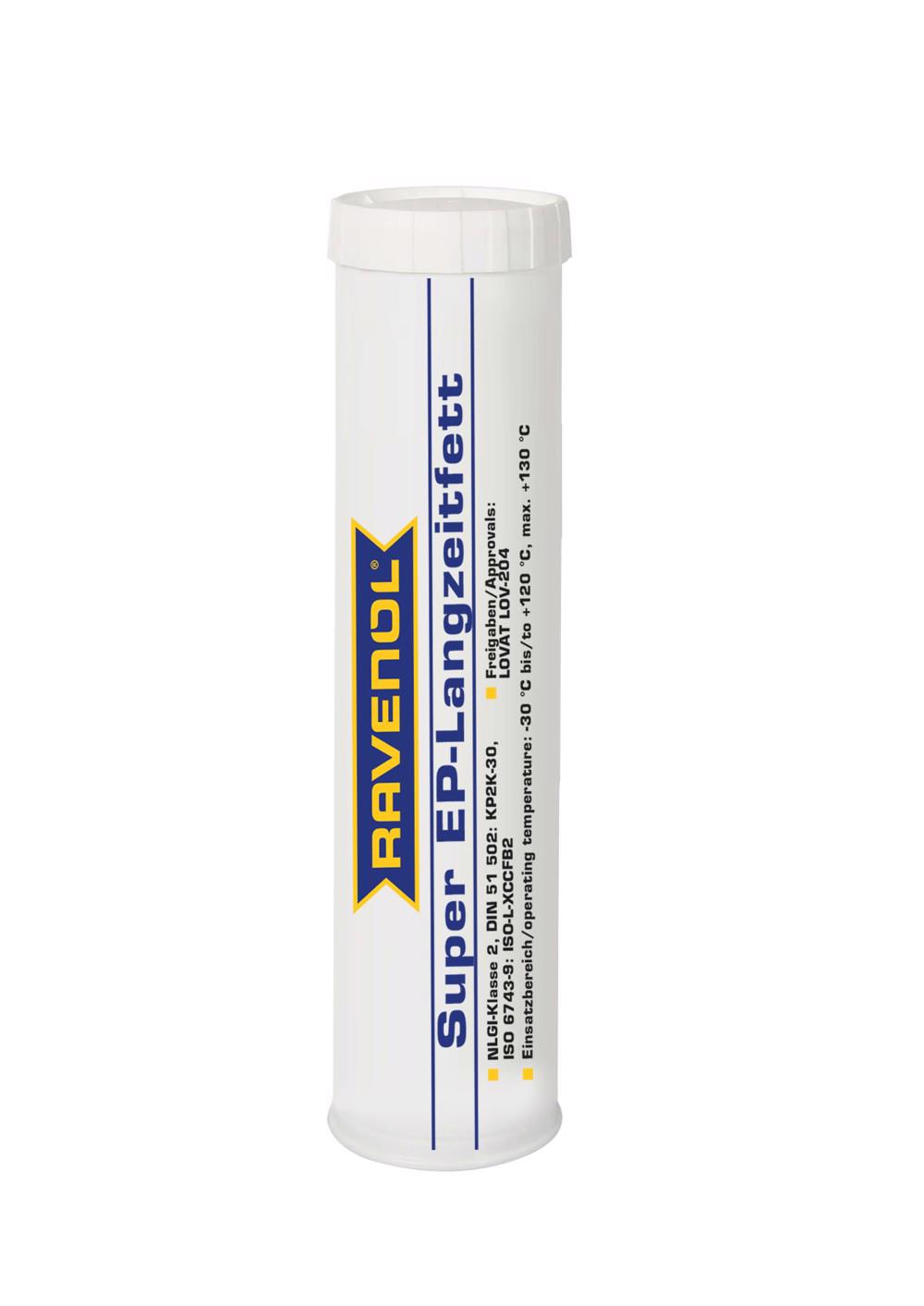 RAVENOL Super EP-Langzeitfett este o unsoare de inalta calitate, cu aditivi pentru presiune extrema EP. Aceasta generatie de aditivi asigura durata de viata prelungita pentru piesele lubrifiate si reduce costurile de intretinere. Datorita structurii sale netede, este usor de aplicat. RAVENOL Super EP-Langzeitfett se bazeaza pe uleiuri de baza de inalta calitate, utilizand sapun de litiu (Li-12-hidroxi stearat) pe post de agent de intarire. Ofera rezistenta extraordinara la lucru. Mai mult decat atat, RAVENOL Super EP-Langzeitfett contine aditivi de imbunatatire a comportamentului antiruginire si anticoroziune. RAVENOL Super EP-Langzeitfett este utilizat pentru lubrifierea rulmentilor aflati sub influenta umezelii, vibratiei si incarcarilor soc. Aplicarile standard sunt aferente lubrifierii sasiurilor, rulmentilor cu roti si articulatiilor universale din sectorul auto, dar si din industria de utilaje, industria de constructii, agricultura.